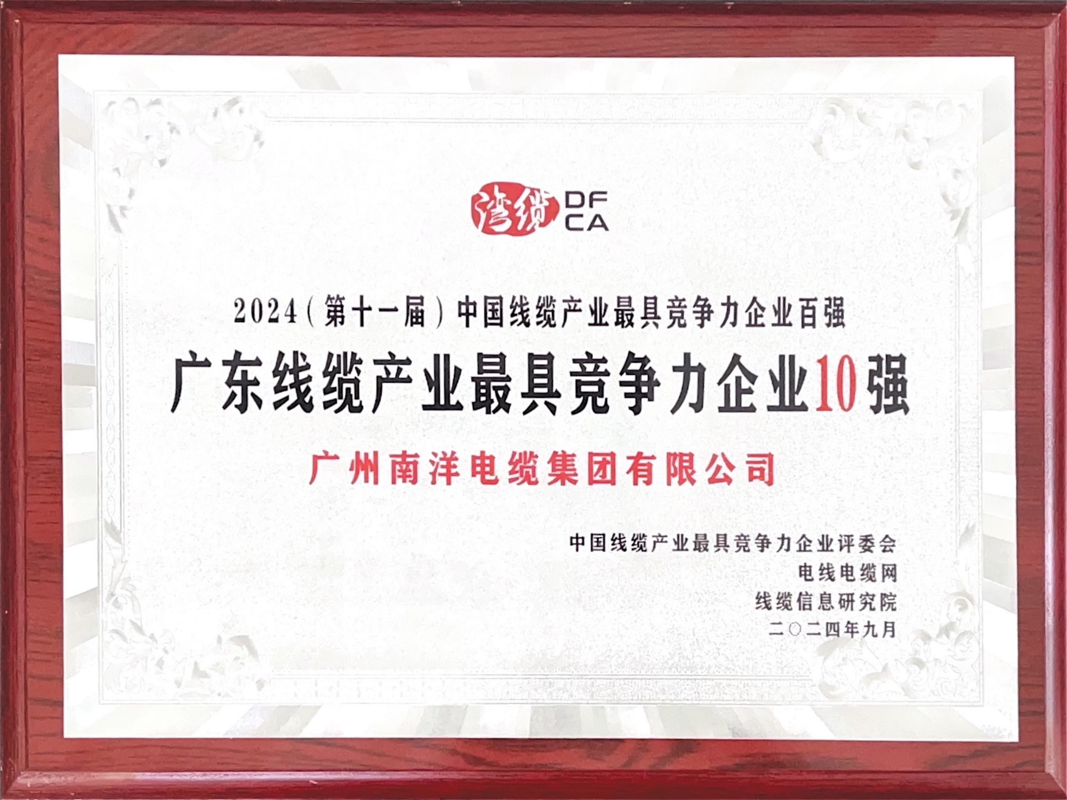 • 2024年度中國線纜行業最具競爭力企業20強證書